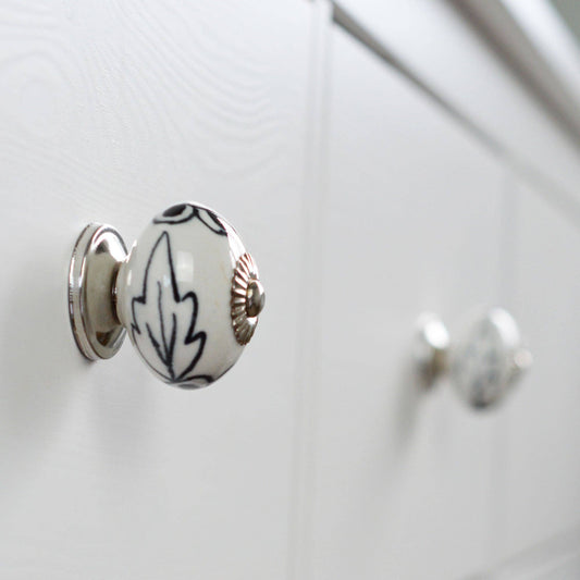 Nicola Spring Round Ceramic Drawer Knob - Black / White Flower